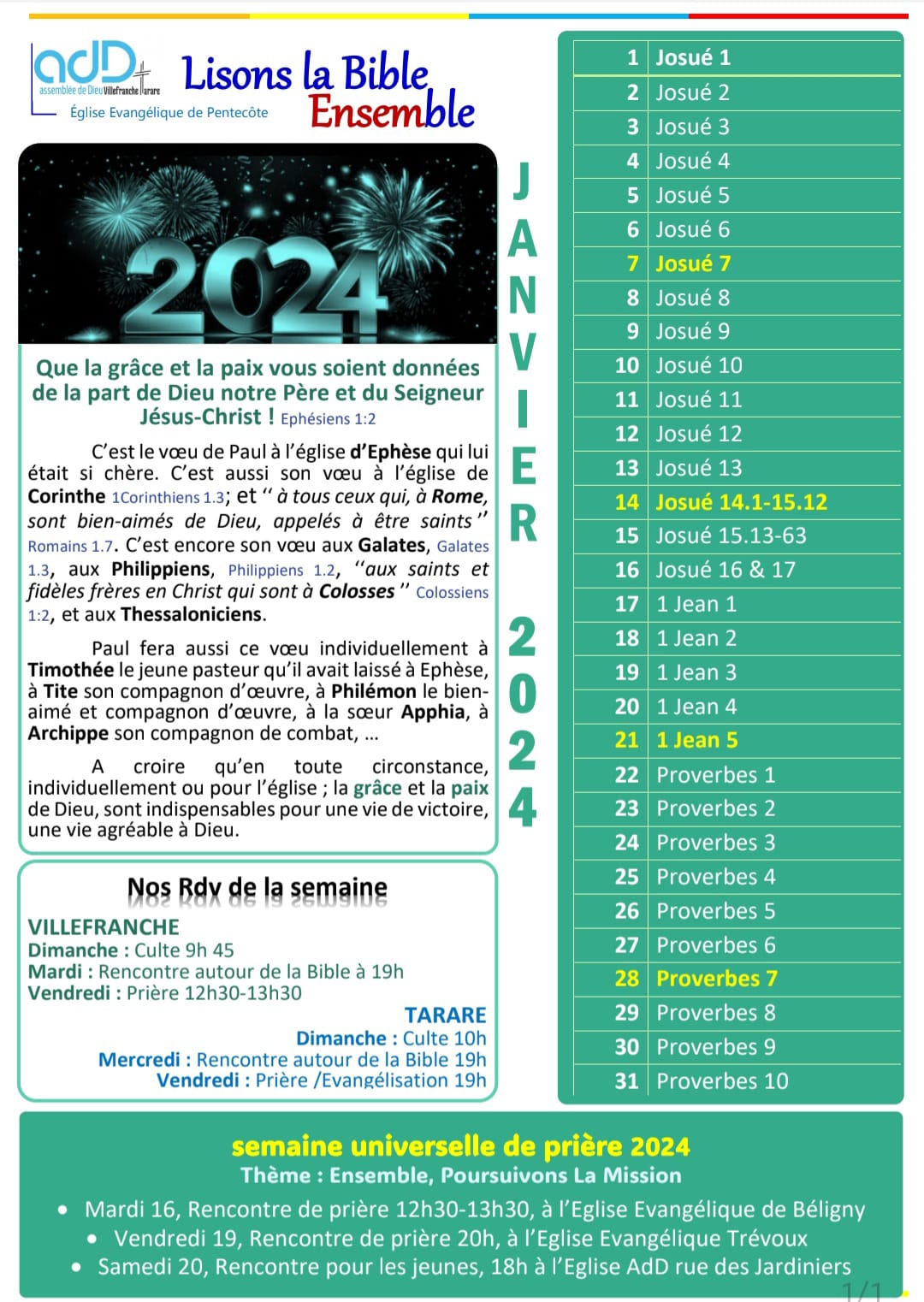 Lisons la Bible ensemble – Janvier 2024